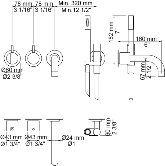 - 2411C-071AP = Grepp NR21, omkastargrepp NR24G, 160 mm fast pip 010C, handdusch och hållare med backventil 070, 2 st. 60 mm täckbrickor 001, 001G, 2001.
