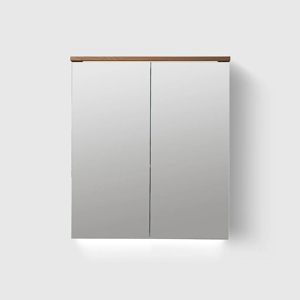 Badrumsmöbel i äkta trä med grepplist och miljövänlig ytbehandling. Välj träslag och topp på möbeln samt stenskiva med handfat. Monterat eluttag och startkit-inredning ingår.