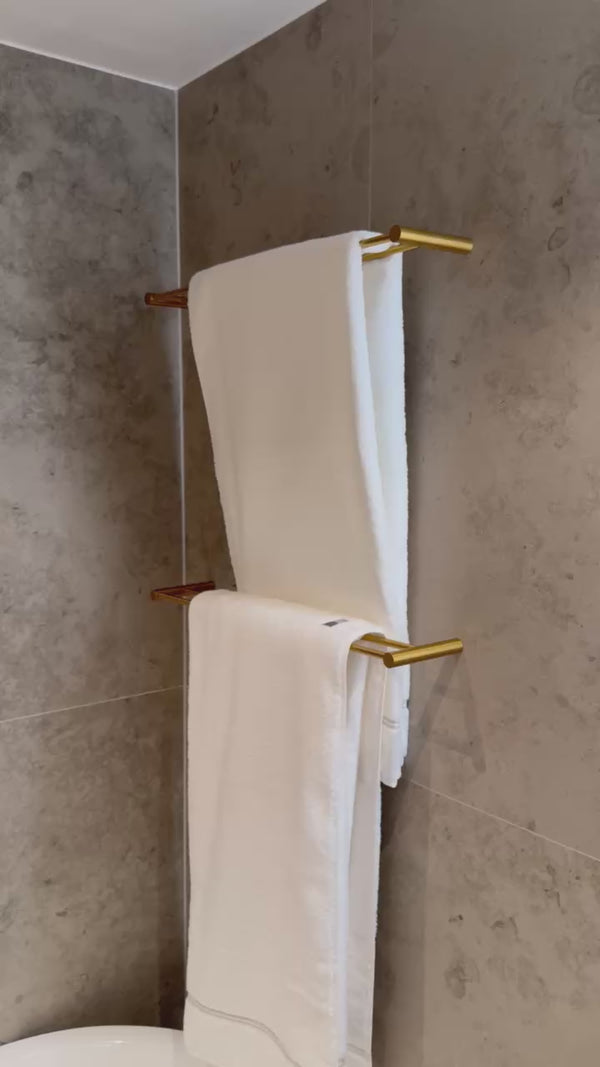 Handduksstång med två stänger i hållbart rostfritt stål. Modern design som matchar blandare och övriga accessoarer för ett enhetligt helhetsintryck.
