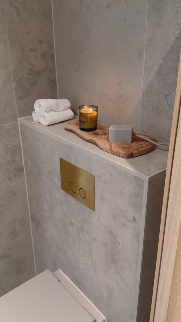 Spolplatta för inbyggnad i elegant design med två stabila knappar för hel-och halvspolning. Den slimmade plattan i massivt rostfritt stål inger en stilfull framtoning. Matchar övrigt sortiment i färg och formspråk.