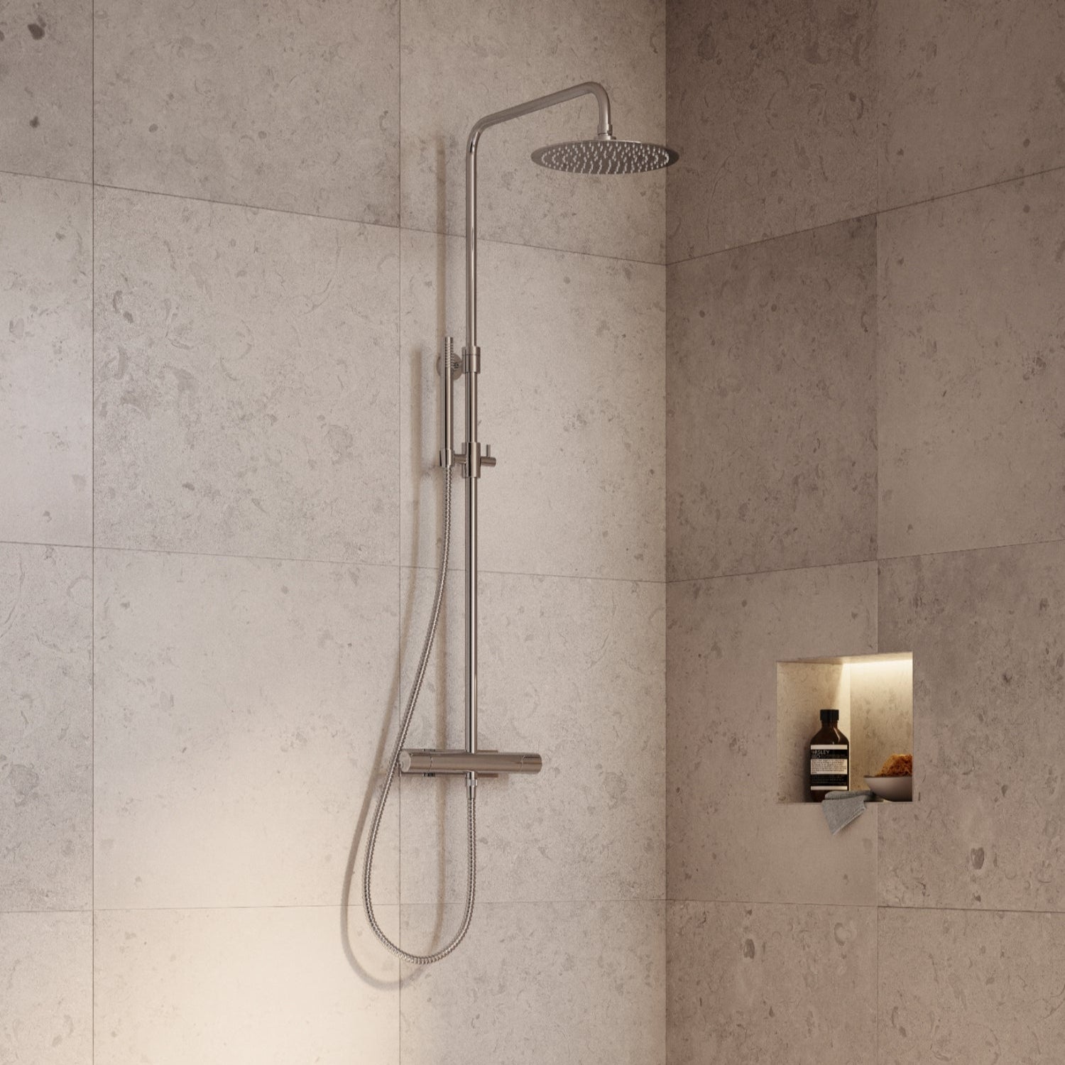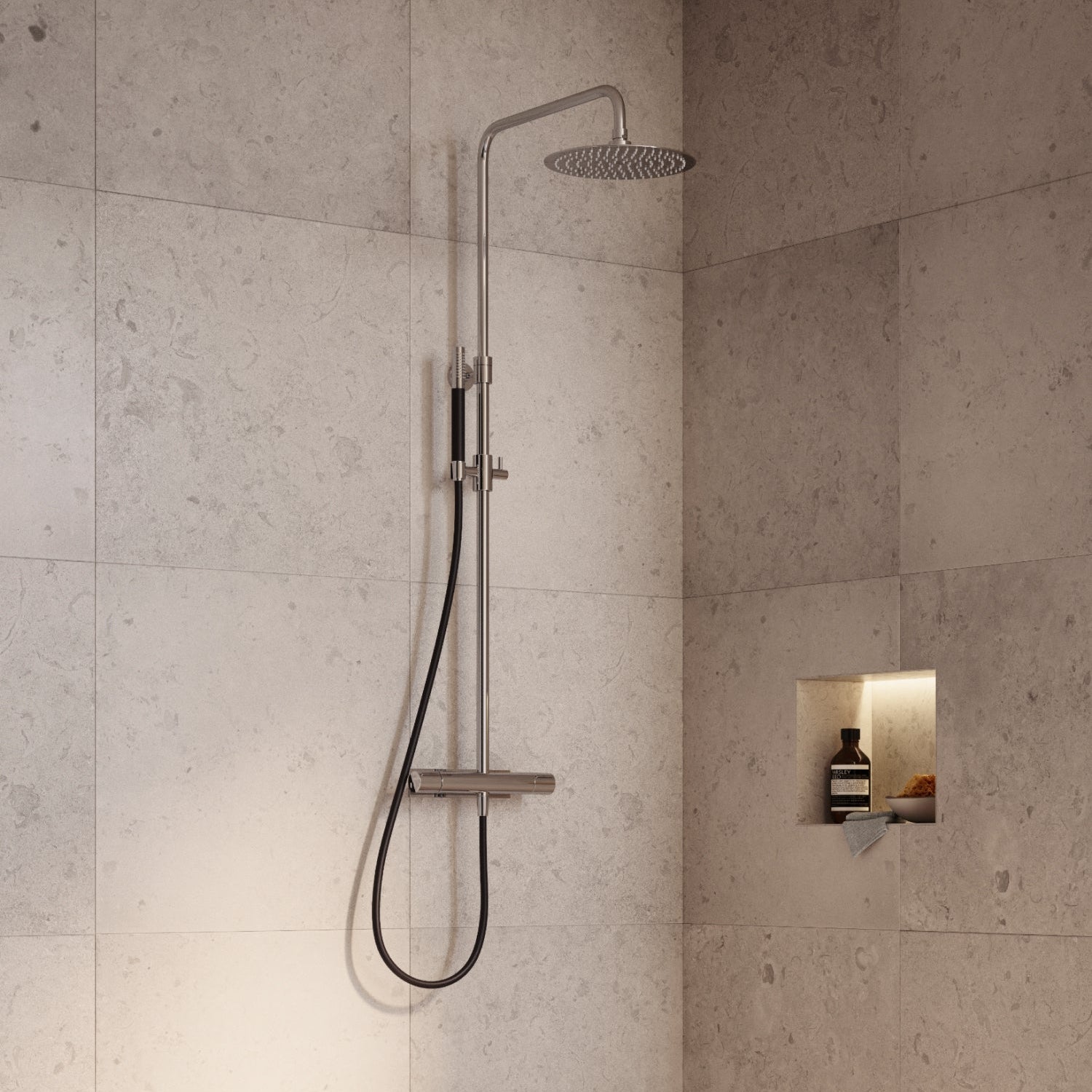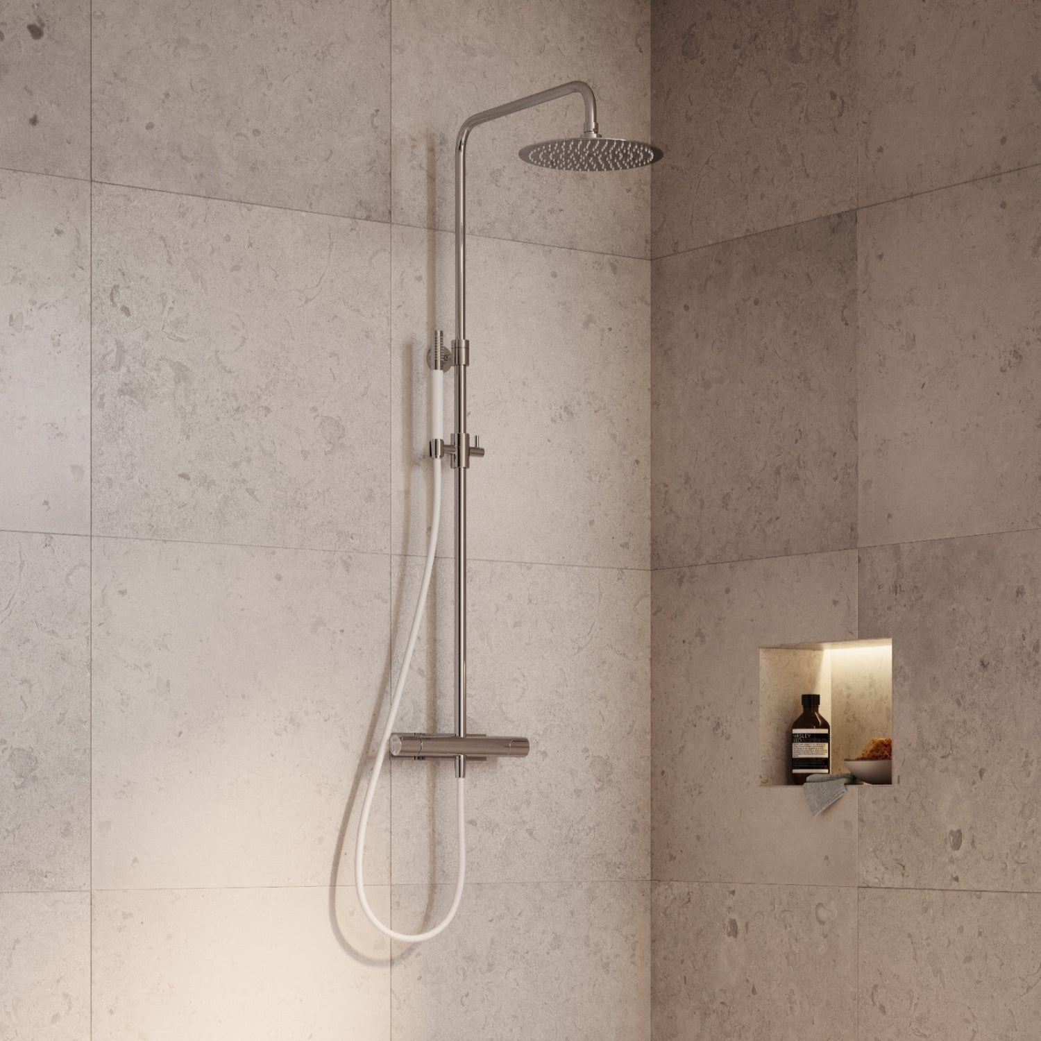 - Justerbar duschstång: 1795-2095 mm från golv till underkant taksil.