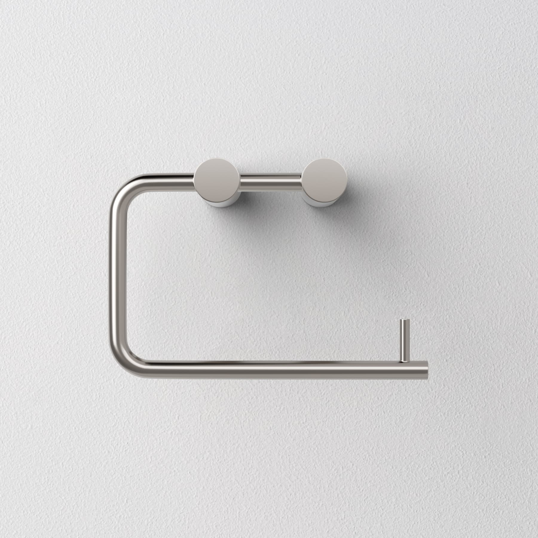 Toalettpappershållare i hållbart rostfritt stål. Modern design som matchar blandare och övriga accessoarer för ett enhetligt helhetsintryck.